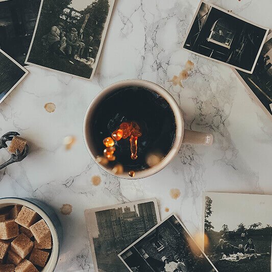 With a blur effect on it! You can change colors and font sizes or remove captions.